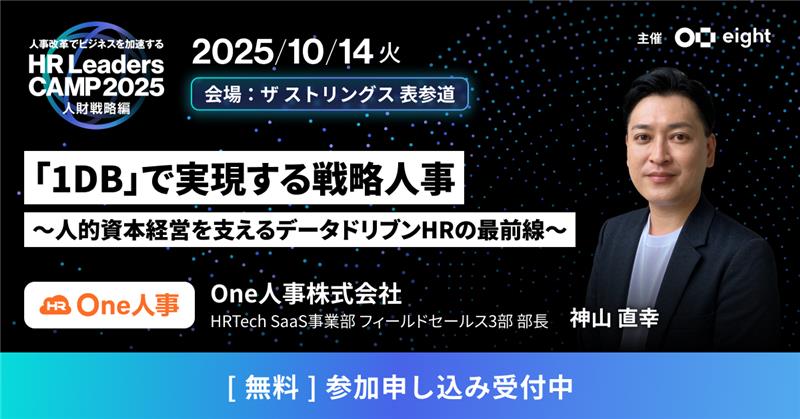 The post 【10/14無料セミナー】HR部門改革による企業の成長について本気で思索しているビジネスパーソンのための学びと交流の場、Eight主催「第4回 HR Leaders CAMP 2025」に登壇決定! first appeared on One人事.[#item_full_content]