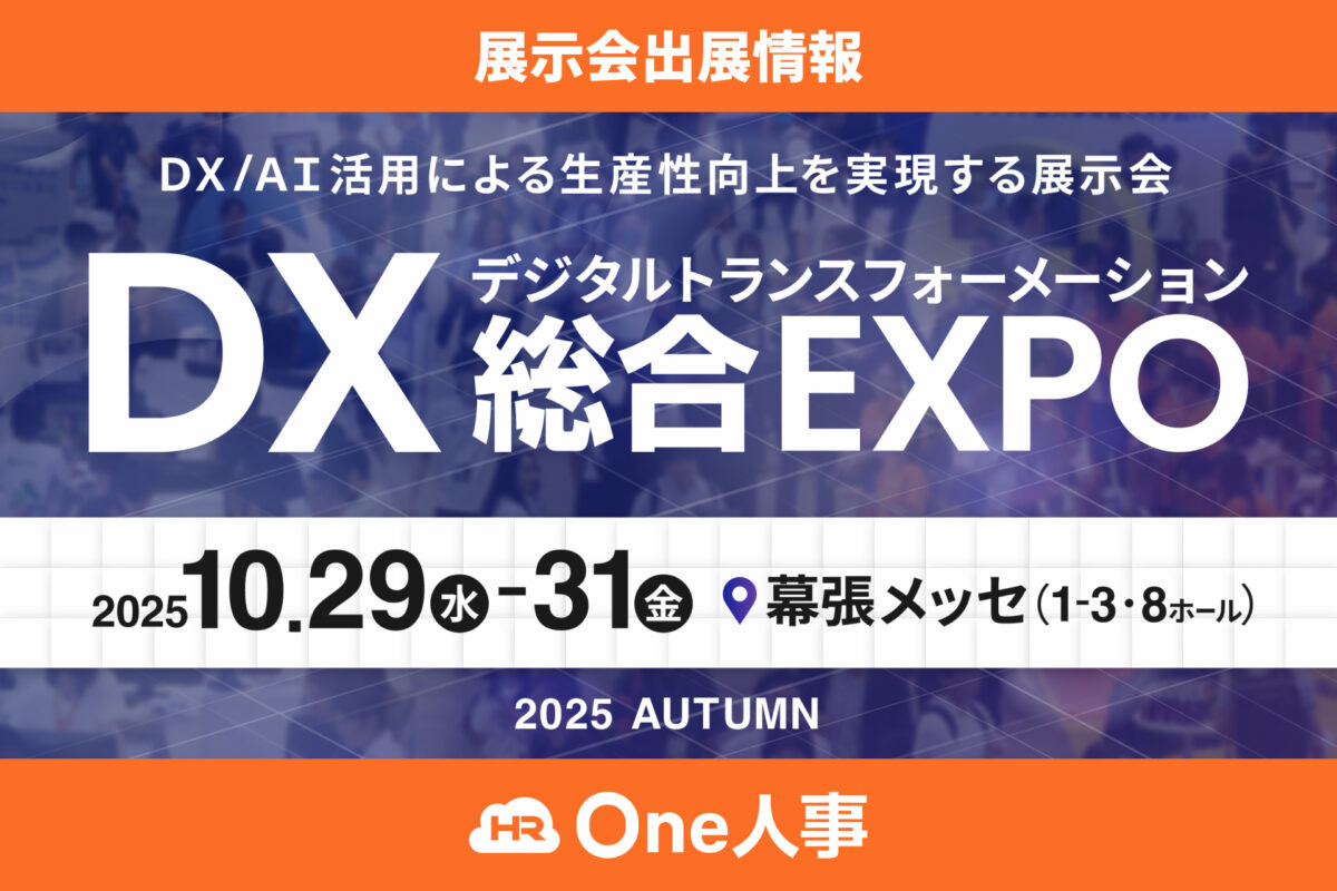 ワンストップ人事労務システム「One人事」を提供するOne人事株式会社(本社:東京都品川区、代表取締役社長:唐沢雄三郎)は、10月に開催される「DX 総合EXPO 2025 東京 秋」に出展いたします。Amazonギフトカードが当たるブース訪問予約キャンペーンも実施中!ご来場の際は、ぜひOne人事ブースへお立ち寄りください。